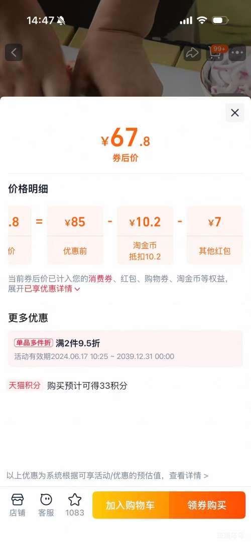 商品到手价67.8元(无红包74.8元),根据小编提供的优惠信息(优惠券+如何使用淘金币抵扣 10.2),下单1件。好价不错过,感兴趣的朋友可以试试!