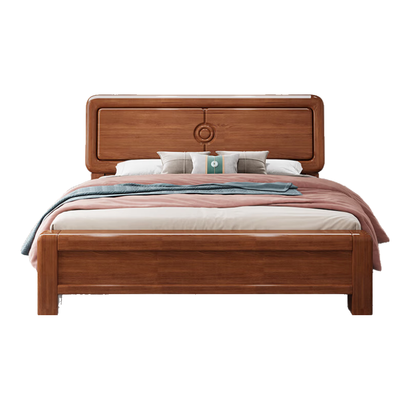 京东自营莱仕达新中式胡桃木实木床1.8米双人床小户型现代简约主卧婚床A01 1.8床