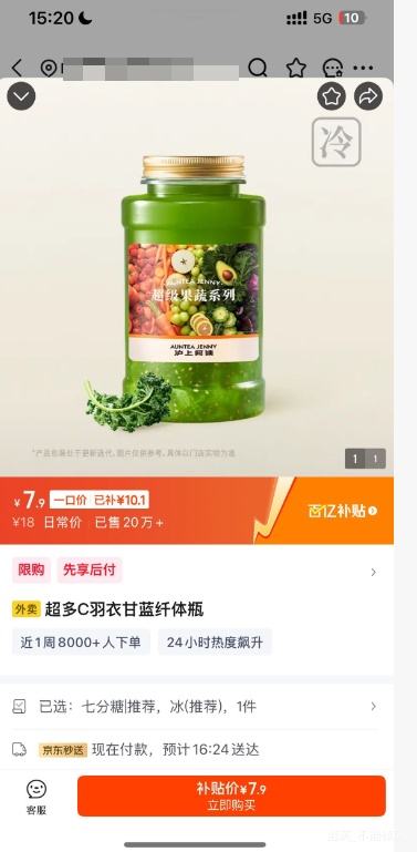 商品到手价7.9元(需领券),根据小编提供的优惠信息(点此链接下单),下单1件。好价不错过,感兴趣的朋友可以试试!