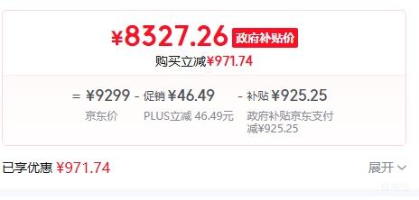 商品到手价8327.26元(非国补),根据小编提供的优惠信息(3C-政府补贴15%/20%--部分地区可领),下单1件。好价不错过,感兴趣的朋友可以试试!