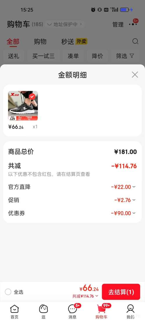 商品到手价66.24元(需领券),根据小编提供的优惠信息(满170减80),下单1件。好价不错过,感兴趣的朋友可以试试!