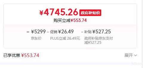 商品到手价4745.26元,根据小编提供的优惠信息(3C-政府补贴15%/20%--部分地区可领),下单1件。好价不错过,感兴趣的朋友可以试试!