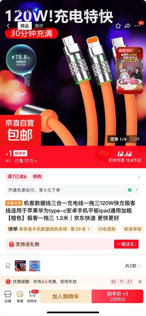 这款机客数据线三合一,120W快充,1.2米加长设计,橙色亮眼时尚,适用于苹果、华为、Type-C等多种设备,出门再也不用带一堆充电线啦!