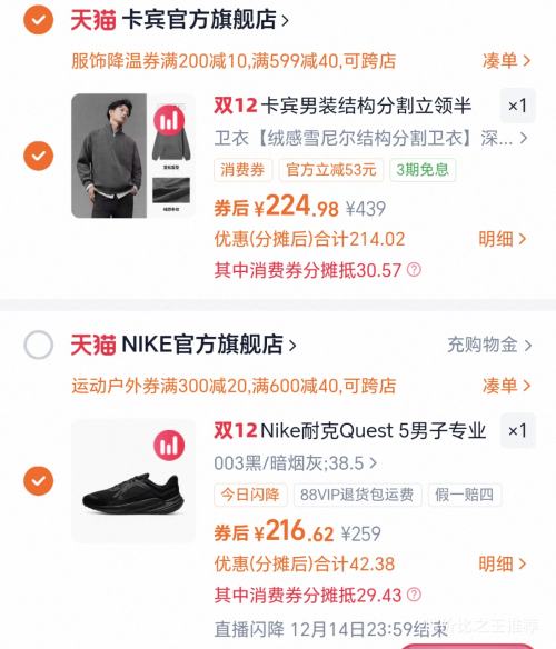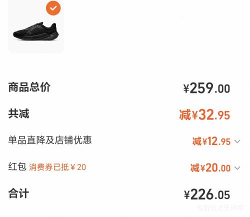 商品到手价226.05元(凑单后到手更低),根据小编提供的优惠信息(优惠券+88vip 双12 88折/9折 780元消费券 至高抵(20/60/200/500)+凑单品),下单1件。好价不错过,感兴趣的朋友可以试试!
