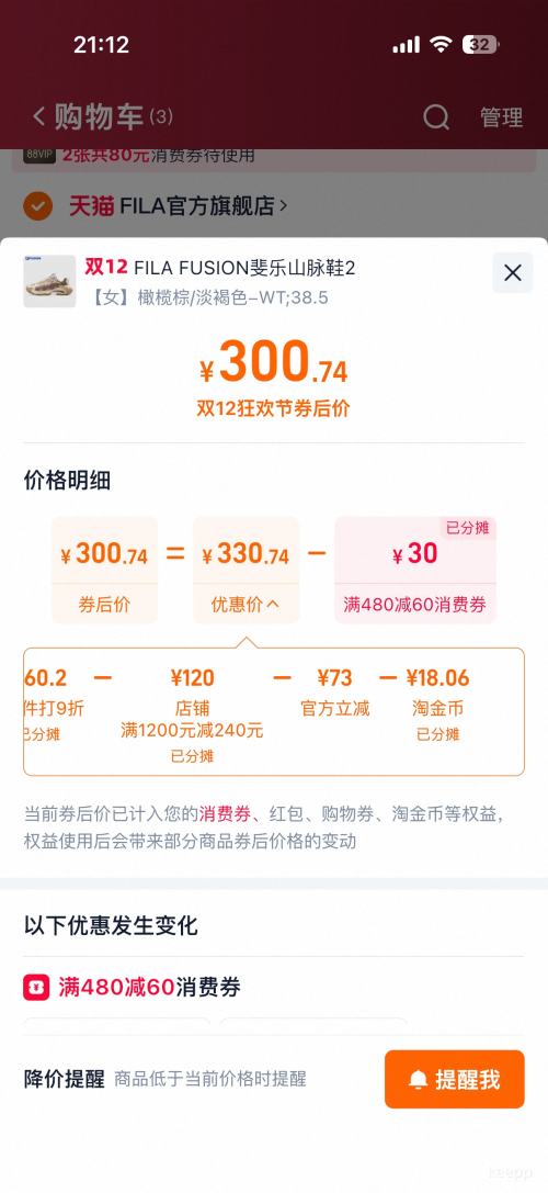 商品到手价300.74元/件包邮+18.06元淘金币(需拍2件,共601.48元),根据小编提供的优惠信息(优惠券+1200-240(每日10/20点补券)+如何使用淘金币抵扣+慢津贴1元),下单2件。好价不错过,感兴趣的朋友可以试试!